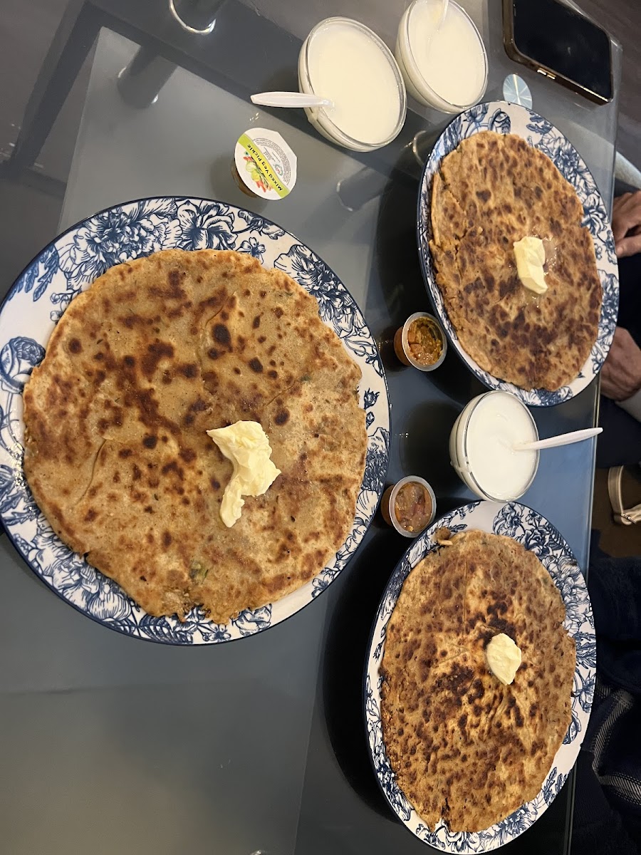 We had noodles spring roll, gud chai, masala chai, gobhi pyaz parantha and aloo pyaz parantha. Everything was good. Spring rolls were delicious. Chai was good in morning but when we came back in night to have it. It wasn't same but the manager was nice he took care of it in our bill. Really good place to dine in.